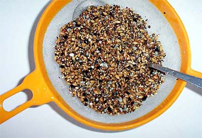 Für das Keimfutter eignetet sich jede normale Körnermischung insofern, dass sie von guter Qualität ist und gut keimt.